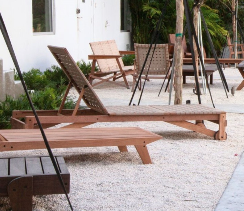 From the Maresias collection, mixing FSC certified Cumaru wood in the base structure and either fabric or leather straps. Several colors available