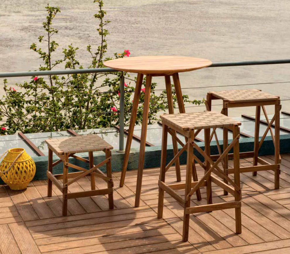 Made of Cumaru wood and part of the Maresias collection. Comes in 2 heights, suitable for both indoor and outdoor use, depending on the material chosen for the seat.