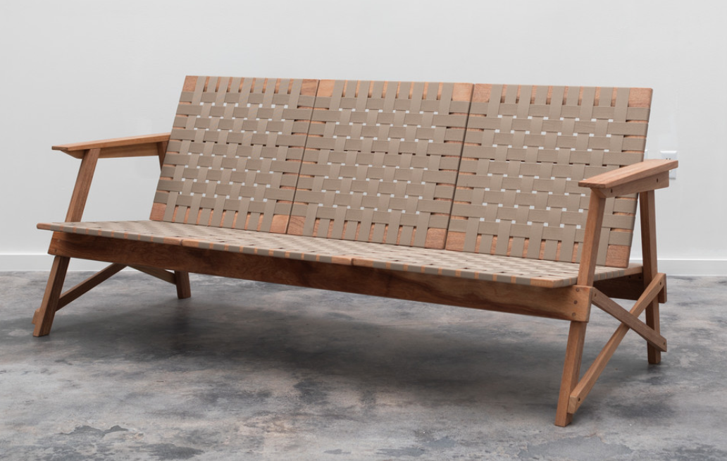 Sofa made of cumaru wood and fabric straps, different colors available. Sample swatches available upon request.